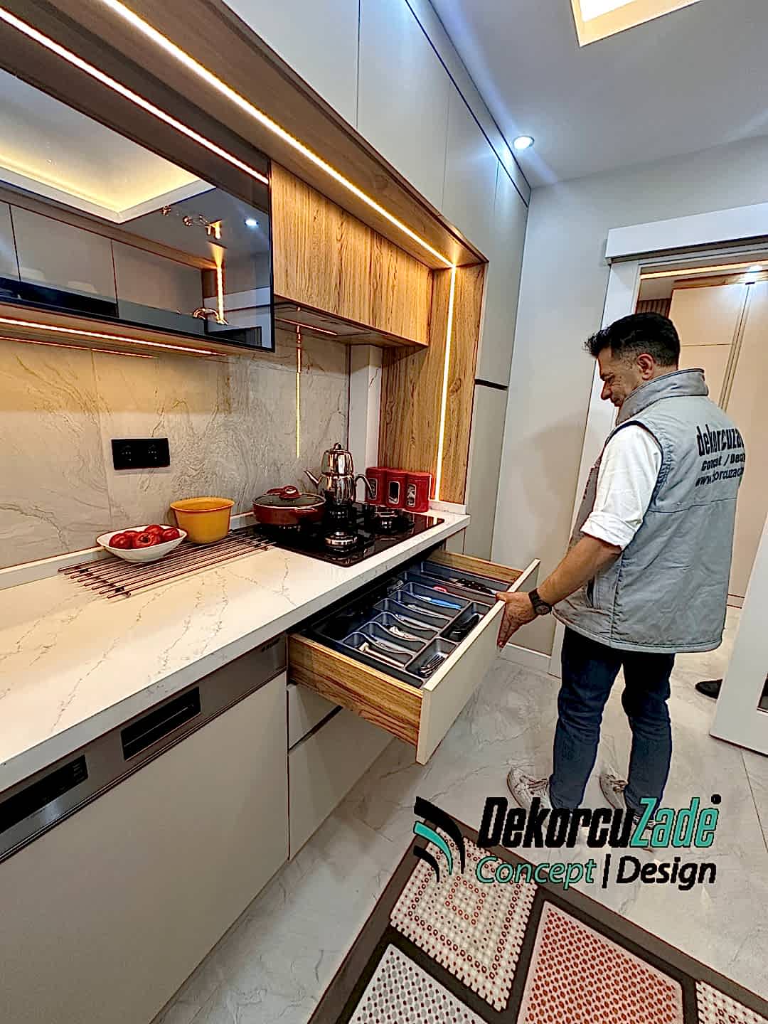 Dekorcuzade Concept, mutfak dolapları ve tadilat hizmetlerinde size en iyi çözümleri sunmak için burada. Detaylı referanslarımızı, müşteri yorumlarını, tadilat dekorasyon uygulamalarını ve yaptığımız evlerin geçirdiği evrimi görmek için sosyal medyadan bizi takip edebilirsiniz. Daha fazla bilgi ve görseller için göz atabilirsiniz.